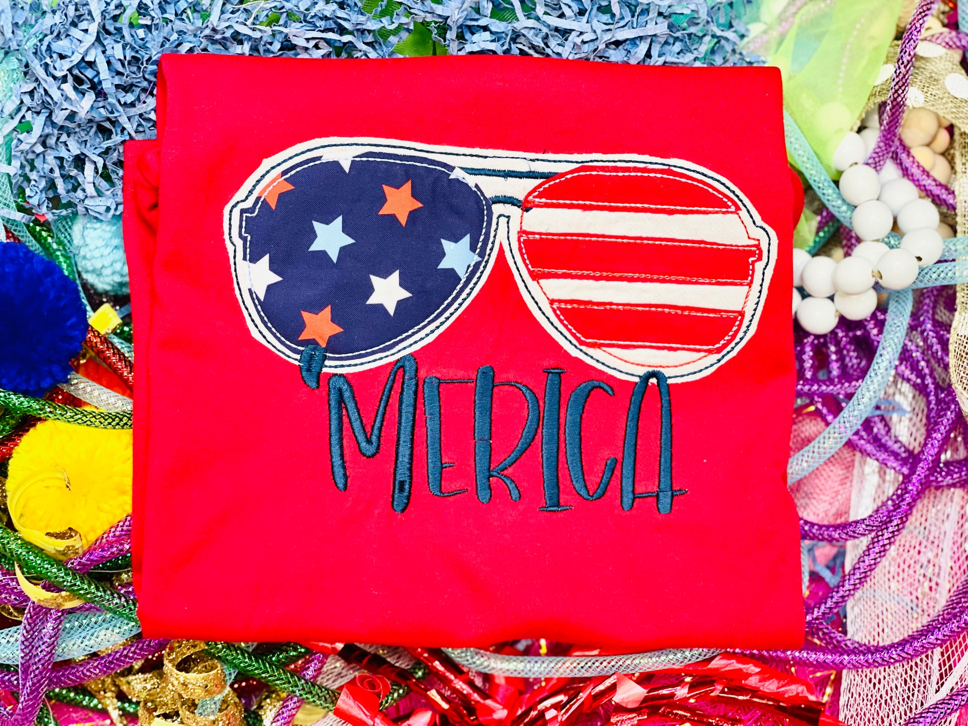 Custom Embroidery 'Merica Sunglasses Shirt