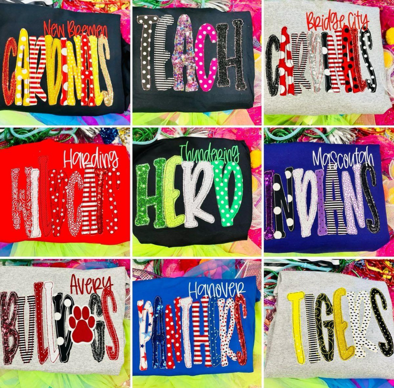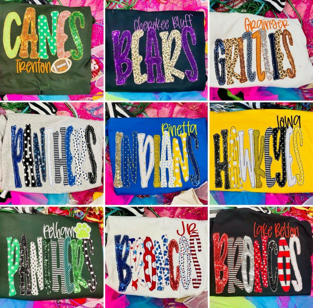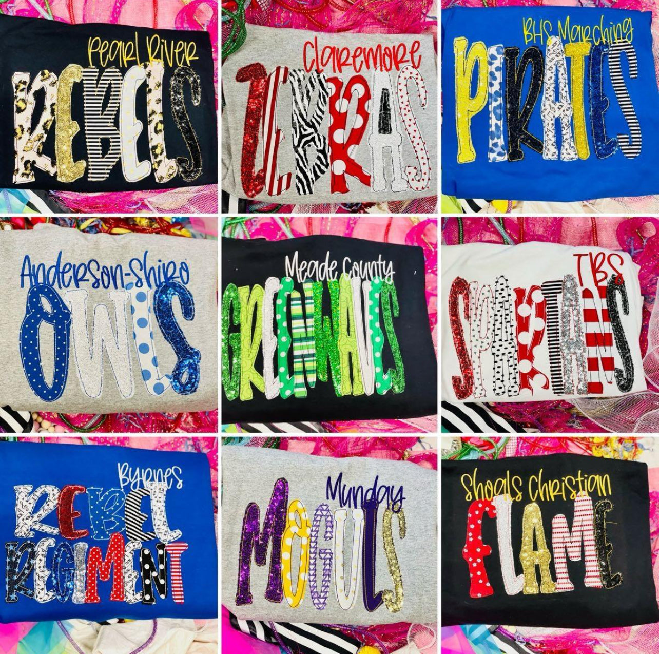 We have done HUNDREDS of these and we would love to customize one for your team or school! You can check out our other listings for examples! We have hundreds of fabrics! Adult Shirts are Gildan, Jerzees, etc. (depending on availability The design is embroidered, meaning it is stitched into the shirt for great quality and durability. If you have any questions please let me know! Machine Wash COLD, INSIDE OUT & HANG DRY, do not put in the dryer. To Personalize: Add a note when purchasing- your team name, colors, and if you would like a t-shirt, sweatshirt, or long sleeve tee. Price is the same for any shirt choice. Colors may vary slightly due to the screen resolution.